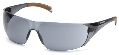 Carhartt billings, gray lens safety glasses with gray temples, wide variety of applications, lightweight, frameless design with wrap around coverage for superior protection & rubber temples for all day comfort, meets ansi z87.1 high impact requirements, can/csa z94.3-07 certified.